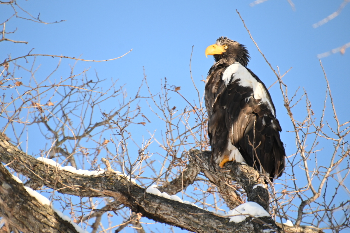 オオワシ成鳥と幼鳥を車の中から撮影しました。